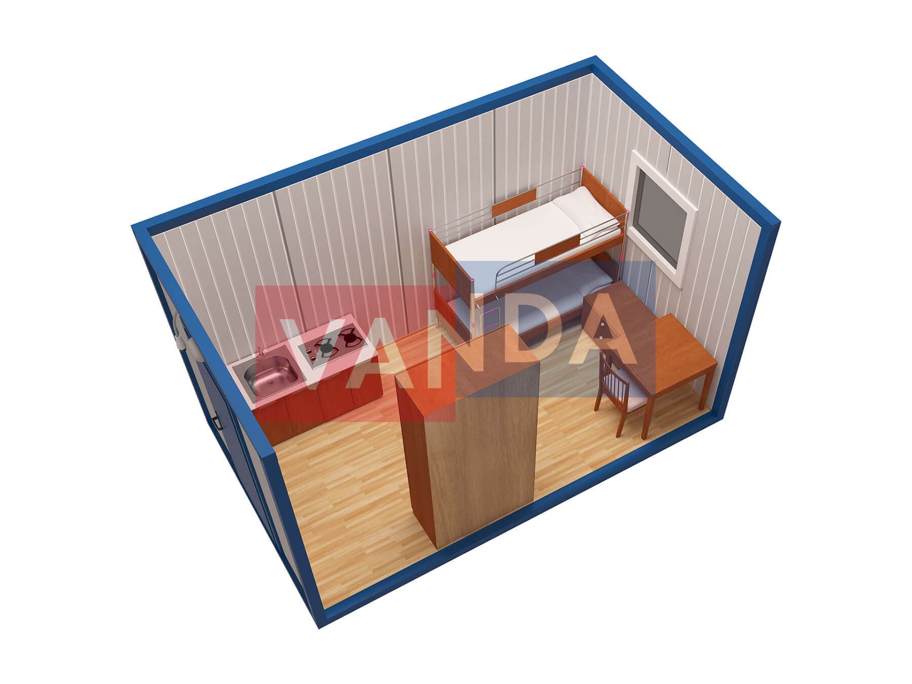 Металлическая бытовка без тамбура 5,85 x 2,4 - Оргалит ДВП